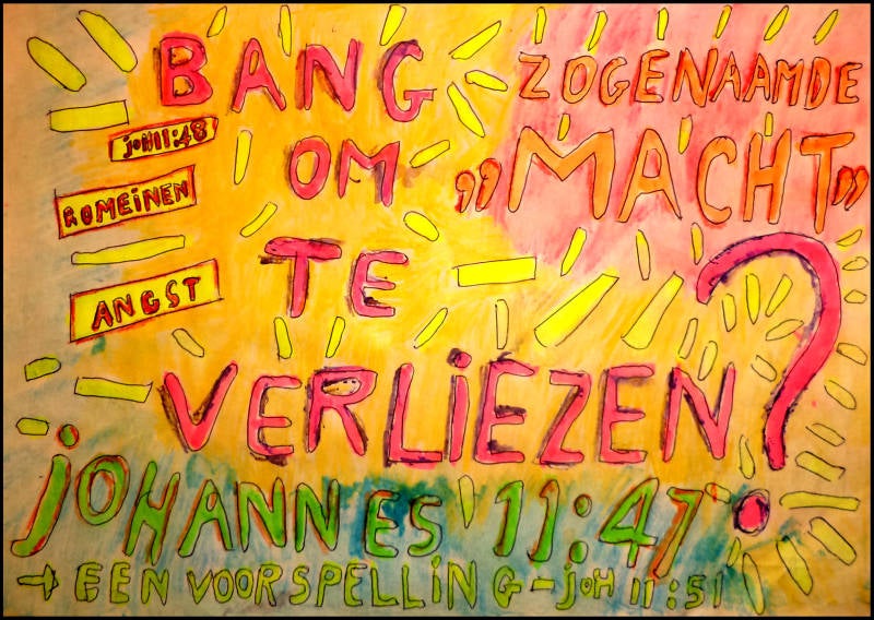 Om de Bijbel beter in mij op te kunnen nemen, helpt het mij om aantekeningen te maken op een getekend of geschilderd plat vlak. Het zijn kleine geheugensteuntjes die voor mij het verhaal weer snel weer naar boven kunnen laten komen. Beeldtaal is een taal waar ik mee opgegroeid ben en is een andere taal dan woord-taal, een andere taal dan klank-taal en een ander taal dan bewegingstaal. Wellicht zijn ze niet geheel volledig voor een ieder die er naar kijkt en zijn aanvullingen of opmerkingen natuurlijk altijd van harte welkom. Dus vind je dat er iets heel belangrijks nog ontbreekt of verkeerd is weergegeven, laat dan zeker van je horen: stichtingbando@gmail.com