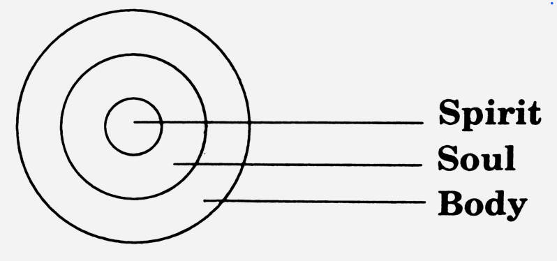 Man is God’s vessel. The Bible divides this vessel into three parts ----the spirit, the soul, and the body. See diagram below: